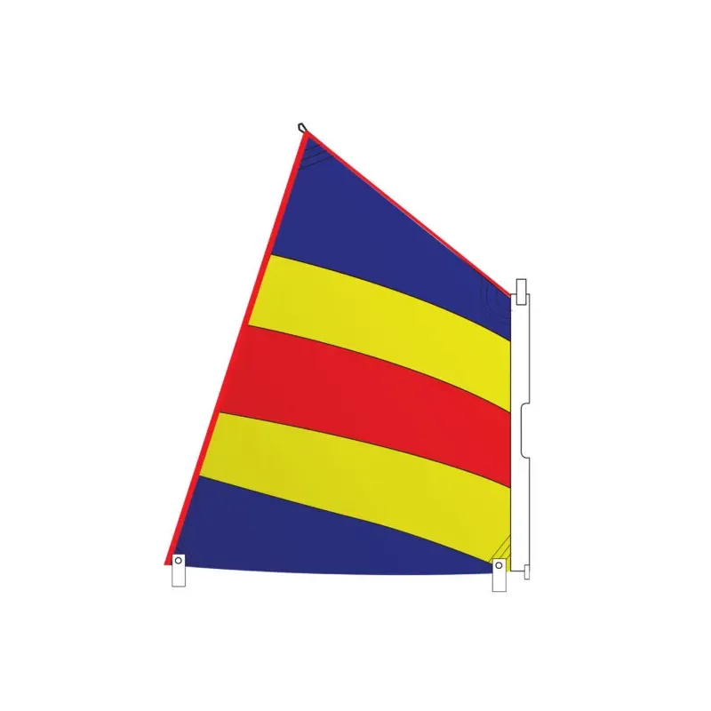 Optiparts sleeve pocket sail. Colored - Sleeve sail, ideal for sailing schools. A sleeve pocket for the mast at the luff with a cutout for the sprit halyard block. This sail is created strong to last long, made of 4 US oz. high quality 100% dacron sailcloth. The sail has 4 heavily reinforced corners, a loose foot and webbing loops at both the tack and the clew point to accommodate the boom. The sail does not have any sailbattens and each of the 5 panels has a different color. Should be used with sleeve mastset EX1052.